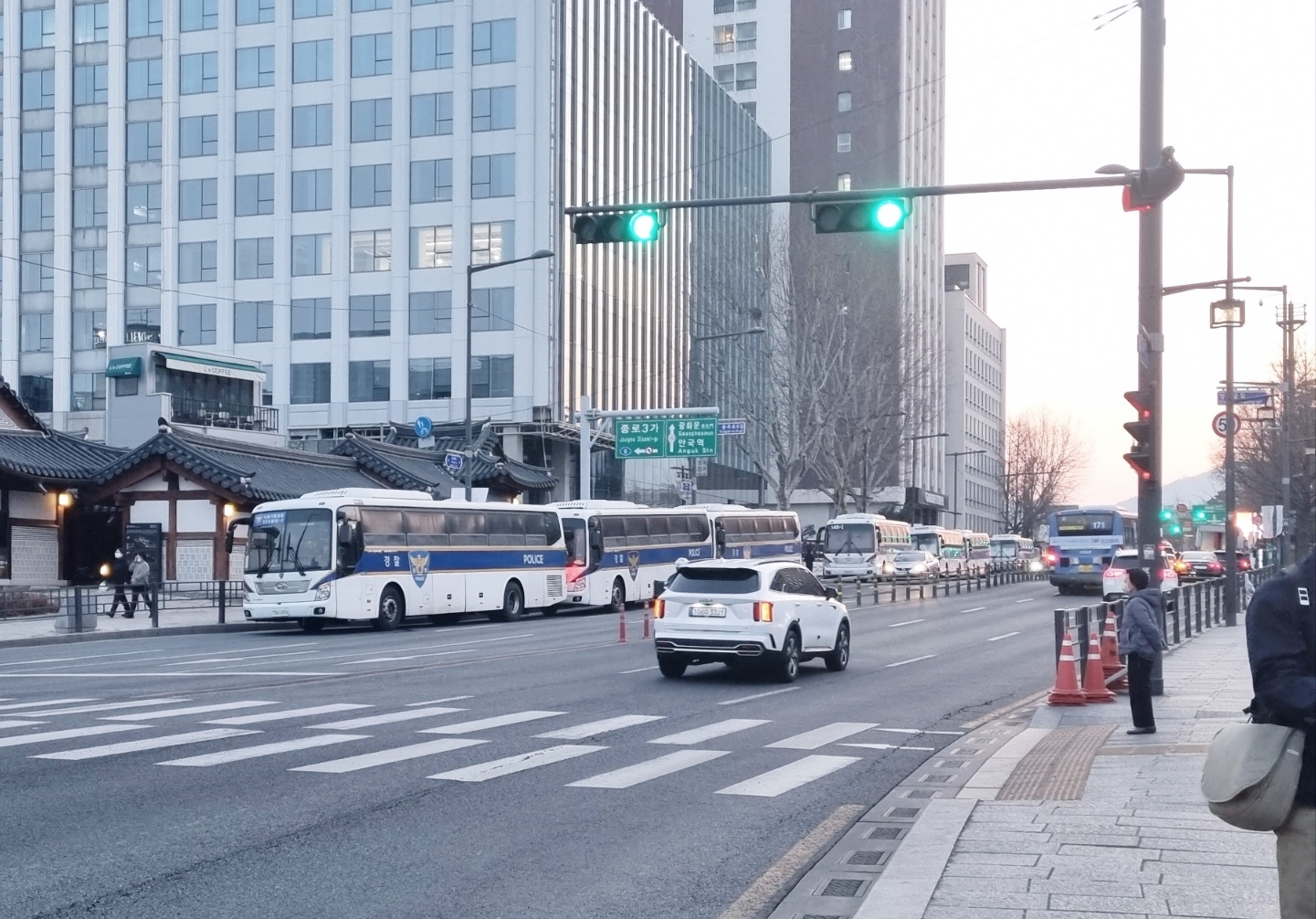 탄핵선고일이 공지되며 경찰은 헌법재판소 앞 재동교차로 일대에서 차량을 통제하고 있습니다다. 북쪽으로는 재동초교, 남쪽으로는 수운회관, 동쪽으로는 현대사옥, 서쪽으로는 안국역까지 차량 진입이 제한됩니다.